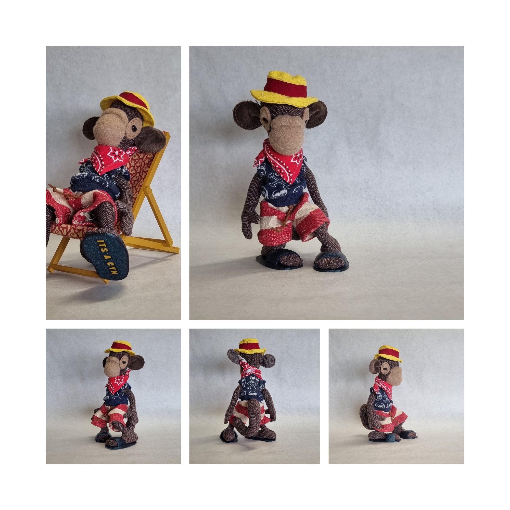 Bring a slice of whimsical beach life to your collection with this hand-crafted, one-of-a-kind sculpture featuring a bored ape lounging in a custom 3D-printed beach chair. Created from upcycled materials, this unique piece blends artistry and sustainability, showcasing the ape’s exaggerated rubber-hose-style limbs and a comically disinterested expression.
