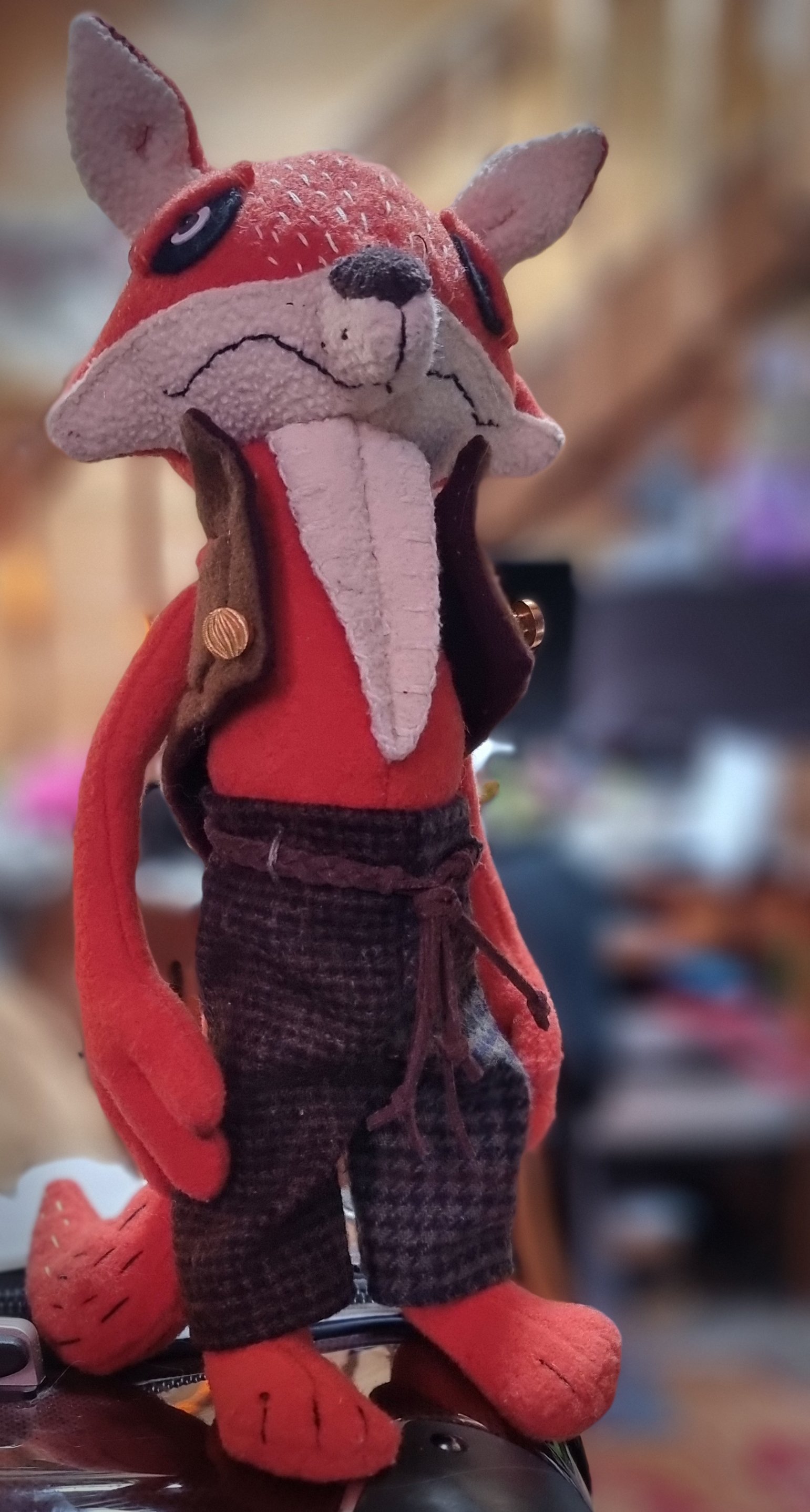 With a carefully stitched expression and poised stance, this fox carries a sense of story and mystery, as though it's returning to the woods after bidding farewell. An ideal collectible for those who appreciate whimsy, craftsmanship, and narratives woven into textiles.