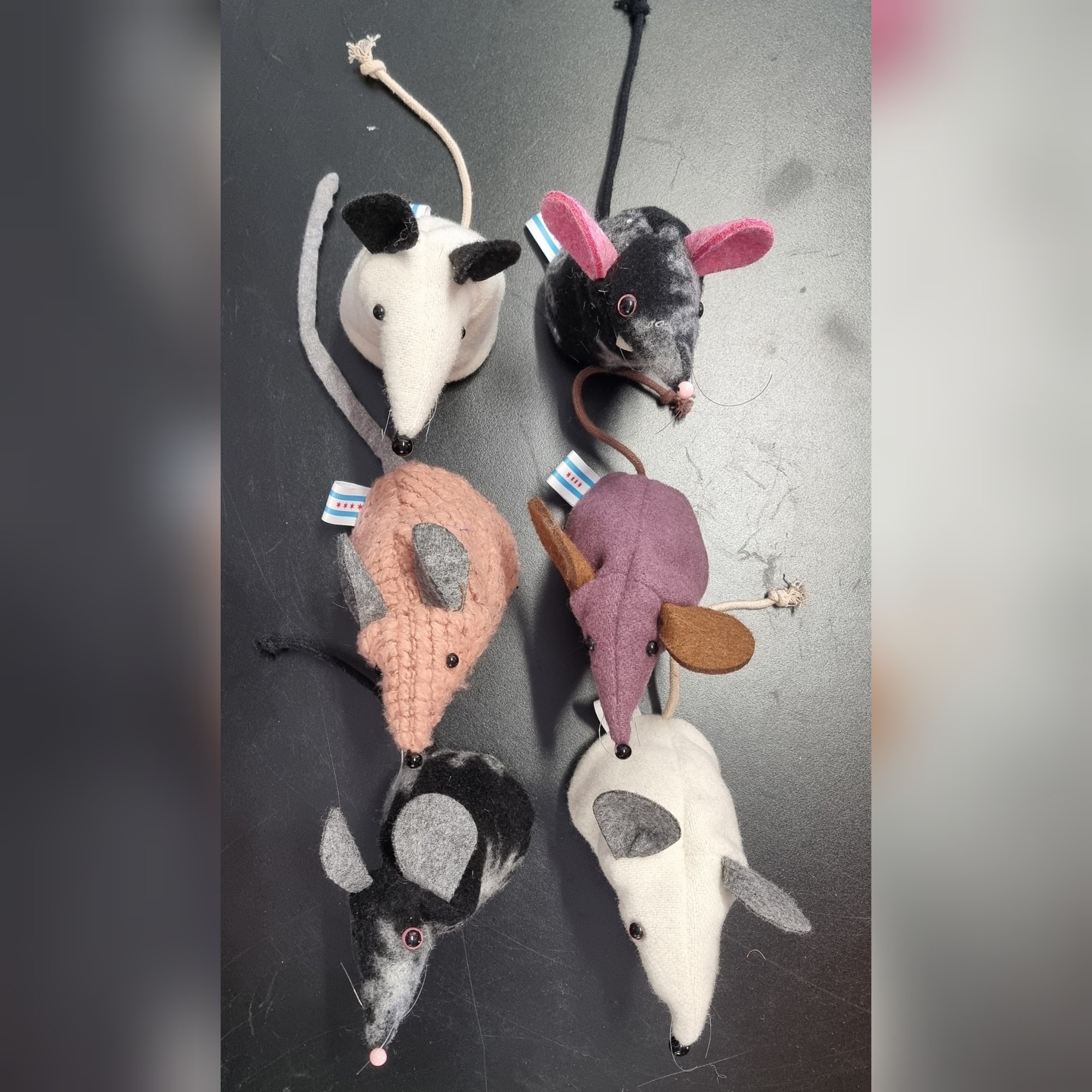 Meet the cutest critters around—adorable mice handcrafted from recycled fabrics! Each mouse is designed with safety eyes and quirky 3D-printed teeth, giving them a delightful personality that's impossible to resist.