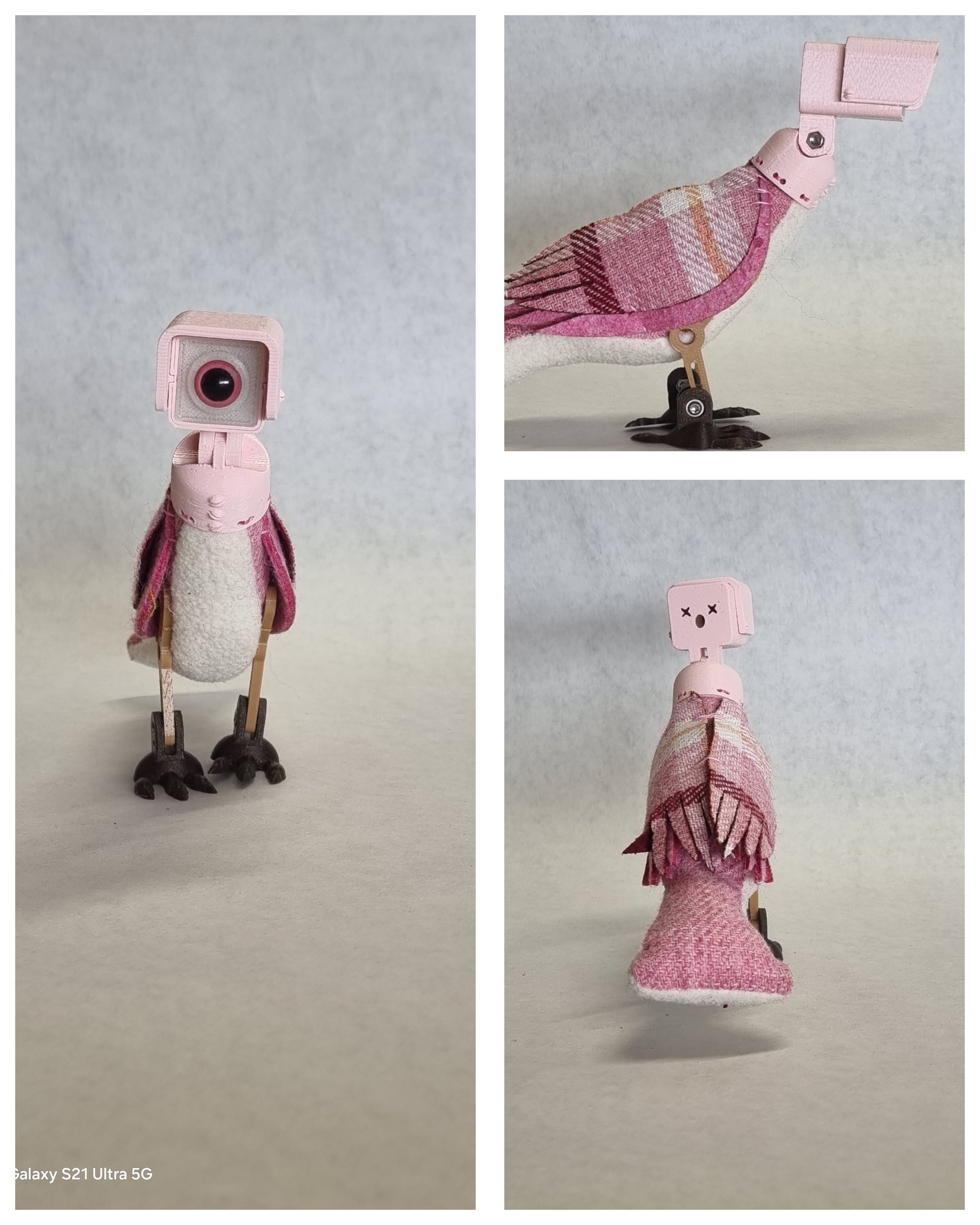 Each bird is unique with a 3d printed head & feet and a human crafted repurposed textile body. Approximately 6 x 2 x 3.5 in PLUS in a unique package, sticker and button so you can spread the word.